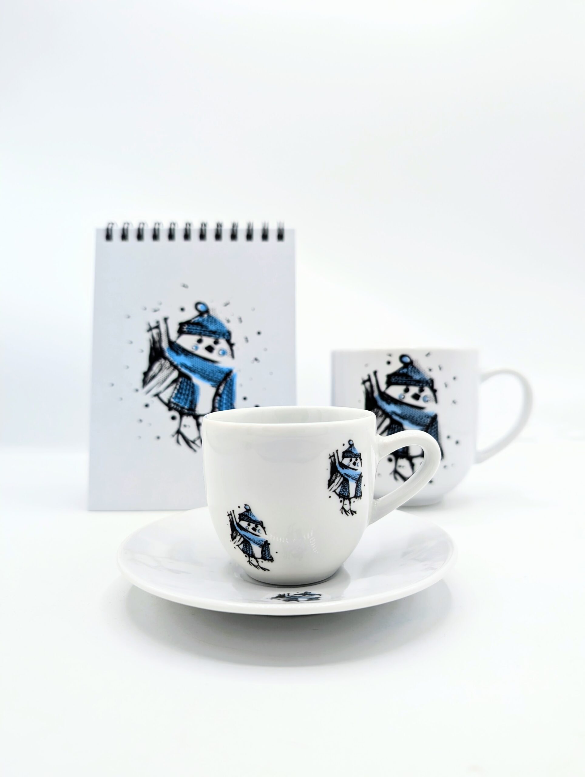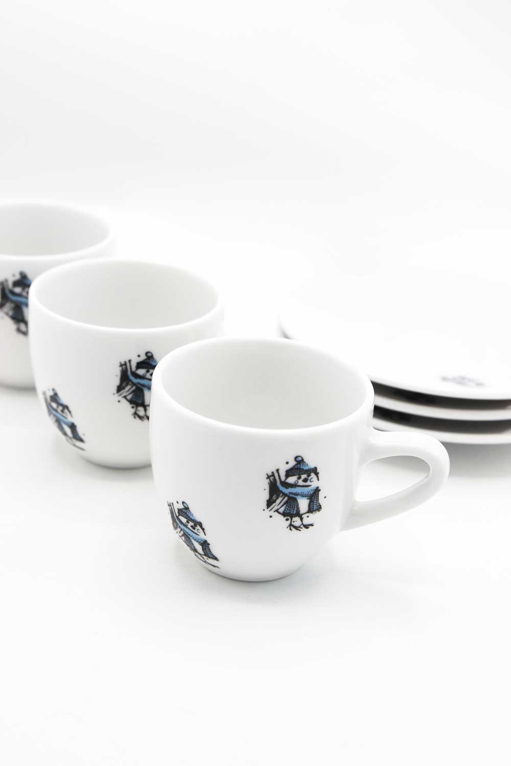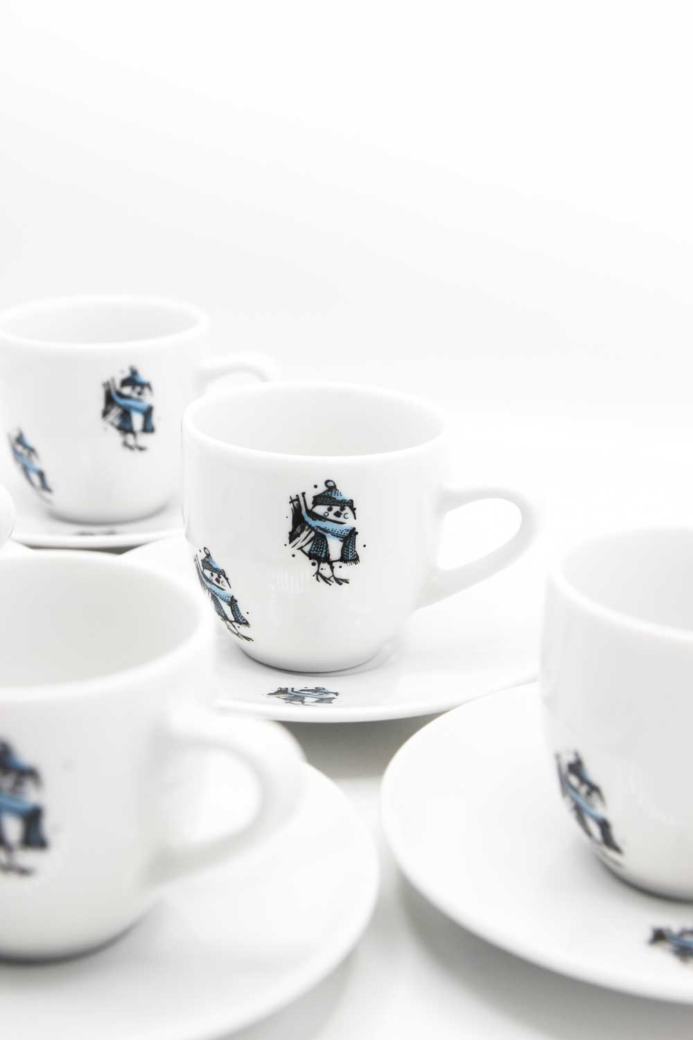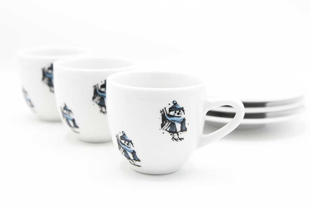 Urocza filiżanka do espresso wraz ze spodkiem, zdobiona zimowym motywem wróbelka w czapce i szaliku. Dekoracja została wykonana trwałą kalką ceramiczną, co zapewnia wyraźne detale i długotrwałą odporność na użytkowanie.