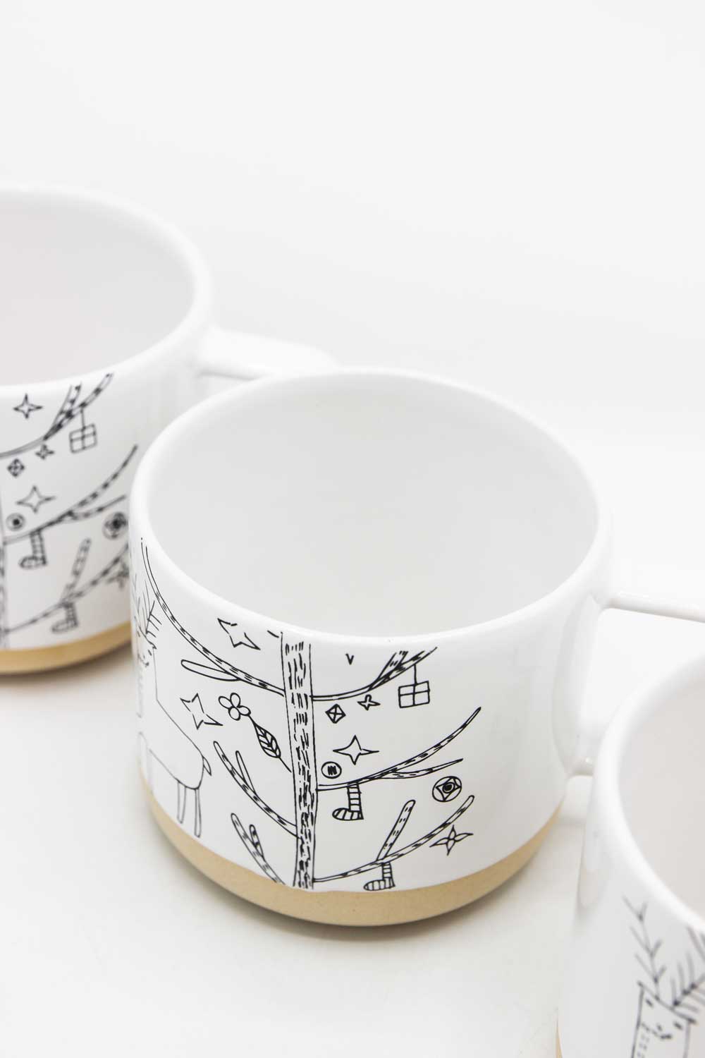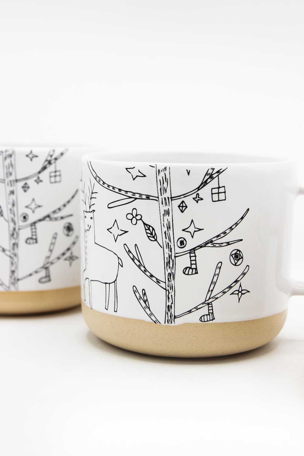 Stylowy kubek ceramiczny o dwukolorowym wykończeniu, pokryty wysokiej jakości szkliwem, które nadaje mu elegancki połysk i zwiększa trwałość. Zdobiony kalką ceramiczną z delikatnym rysunkiem choinki, wprowadza świąteczny nastrój i świetnie sprawdza się zarówno na co dzień, jak i jako element zimowej dekoracji stołu.