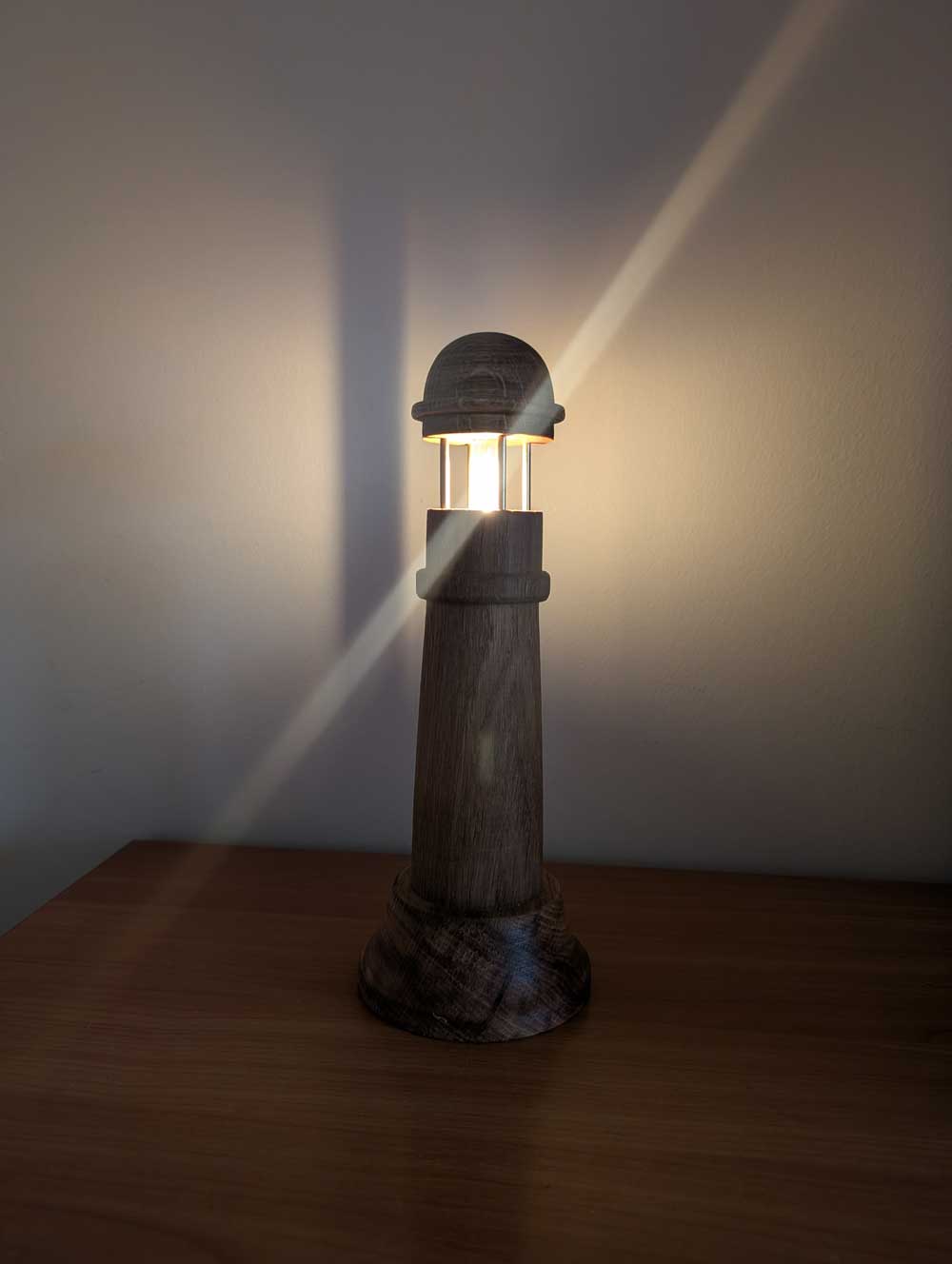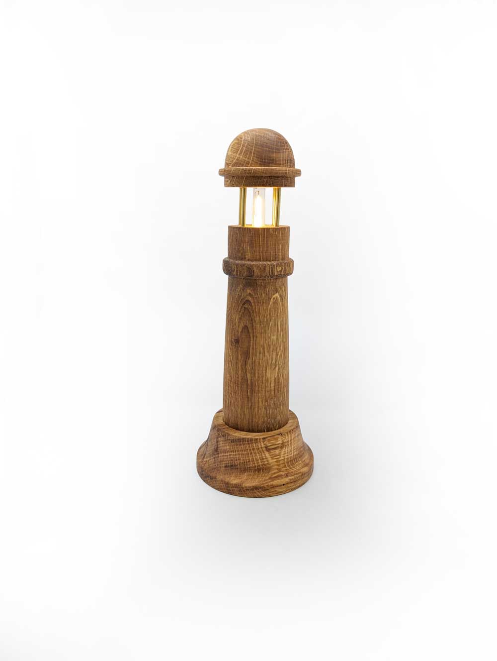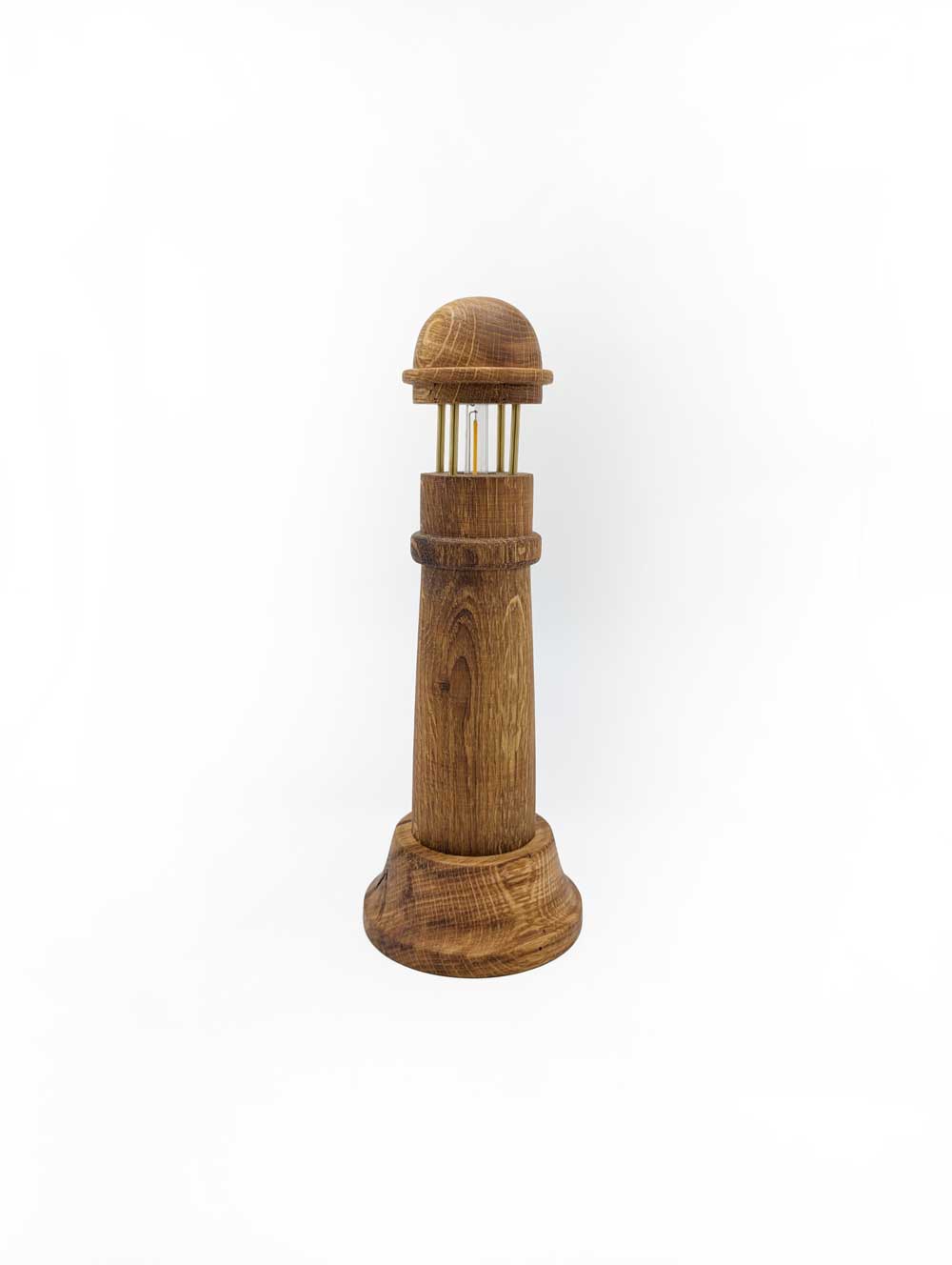 Wyjątkowy lampion inspirowany formą klasycznej latarni morskiej, wykonany z niezwykłą precyzją i kunsztem. Jedyny taki egzemplarz! Powstał z litego drewna dębowego, którego elementy zostały starannie toczone i ręcznie wykończone. Naturalne usłojenie dębu, podkreślone olejowaniem, nadaje lampionowi szlachetny, ciepły wygląd i ponadczasowy charakter.
