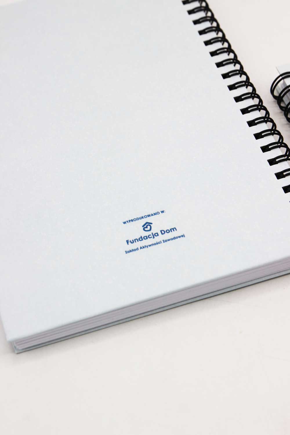 tył notesu znakowany logo Fundacji DOM