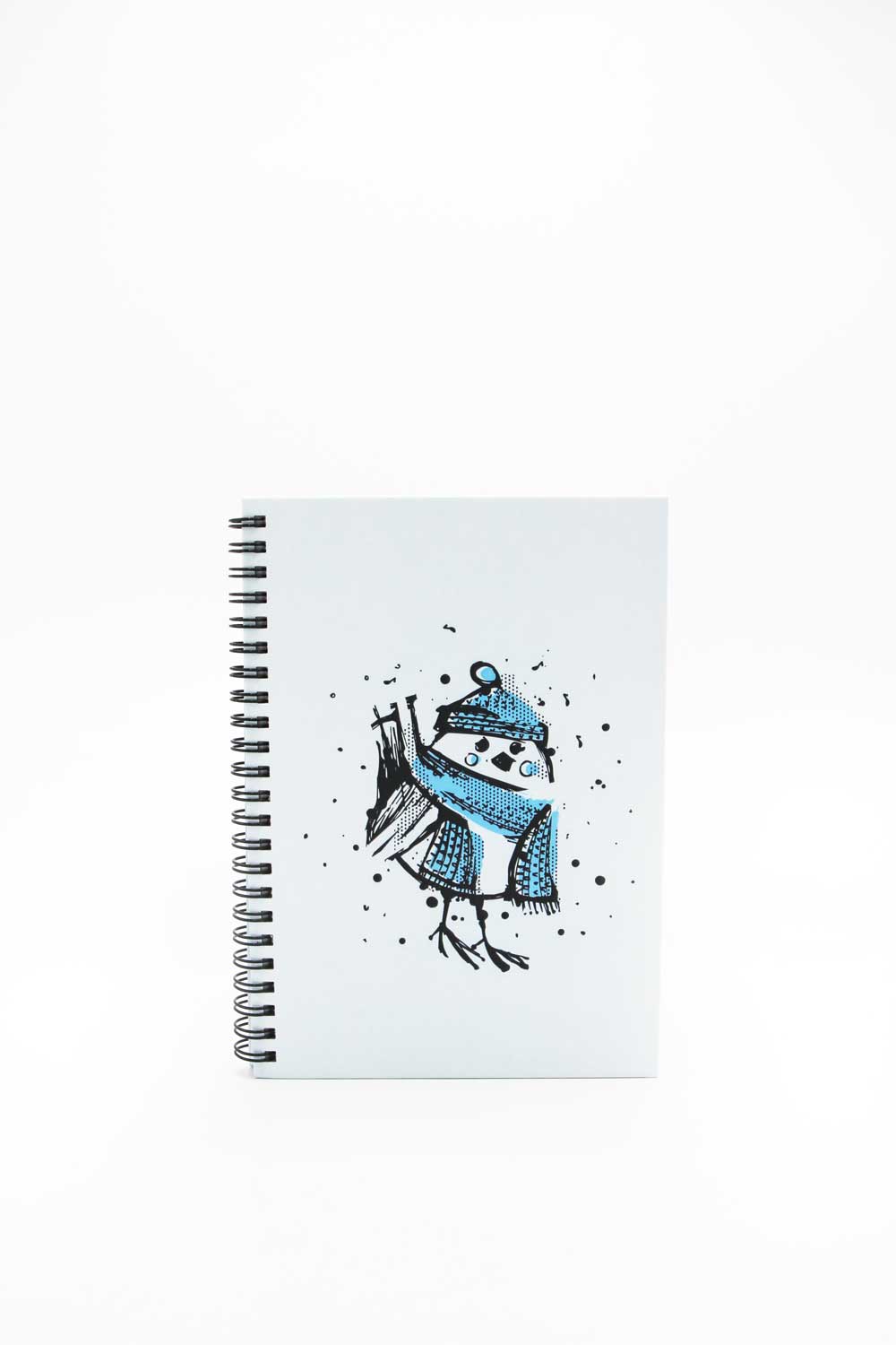 Uroczy notes w formacie A5 z zimowym motywem niebiesko-czarnego wróbelka w szaliku i czapce. Idealny do codziennych zapisków, planów, szkiców czy drobnych notatek. Okładka wyróżnia się estetyczną, nastrojową grafiką, która wprowadza zimowy klimat i sprawia, że notes jest nie tylko praktyczny, ale także dekoracyjny.