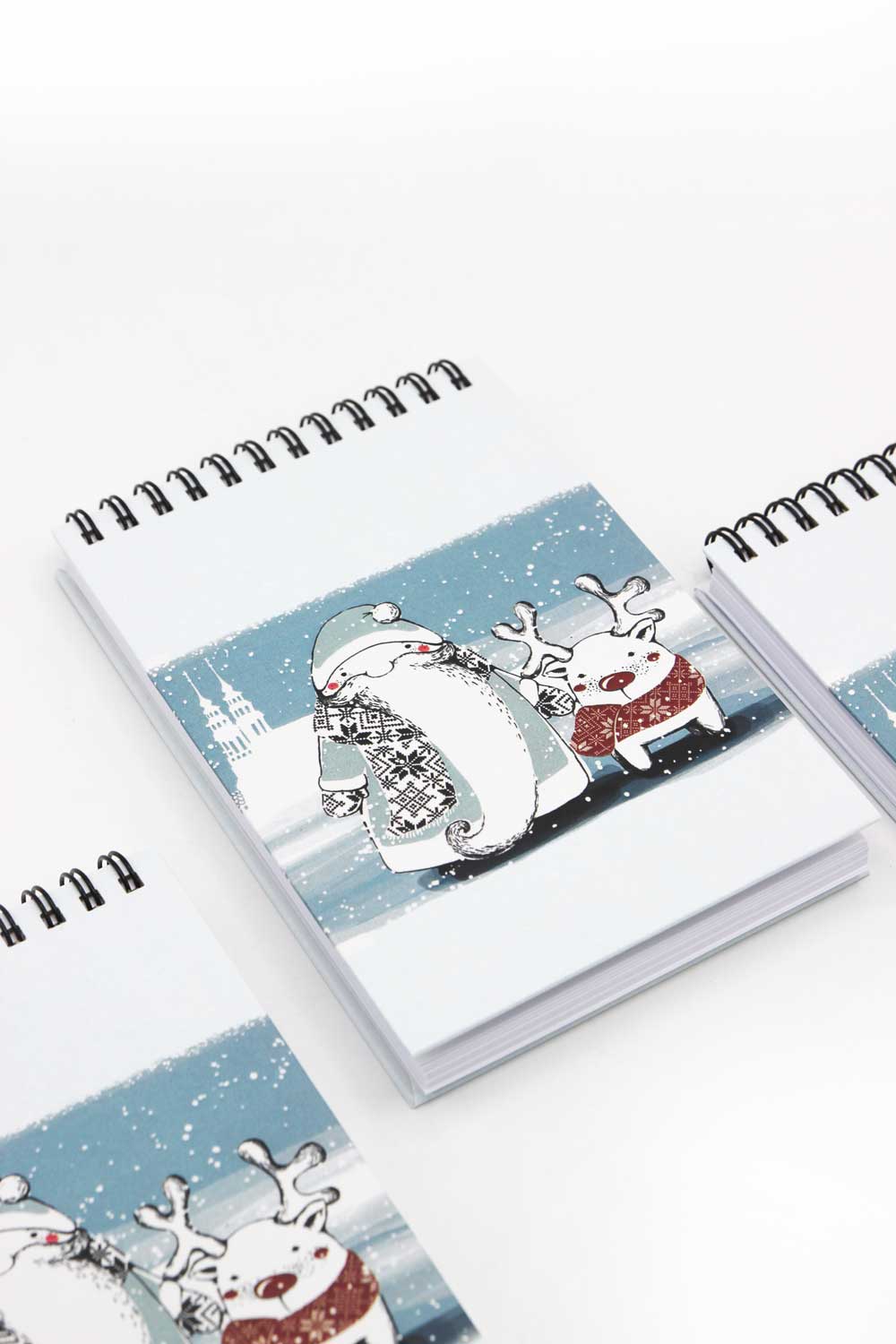 Uroczy notes w formacie A6, ozdobiony nastrojową grafiką przedstawiającą Renifera i Mikołaja w zimowej scenerii. Delikatnie prószący śnieg na ilustracji dodaje okładce wyjątkowego, świątecznego klimatu, dzięki czemu notes idealnie sprawdzi się jako prezent lub codzienny towarzysz zimowych zapisków.