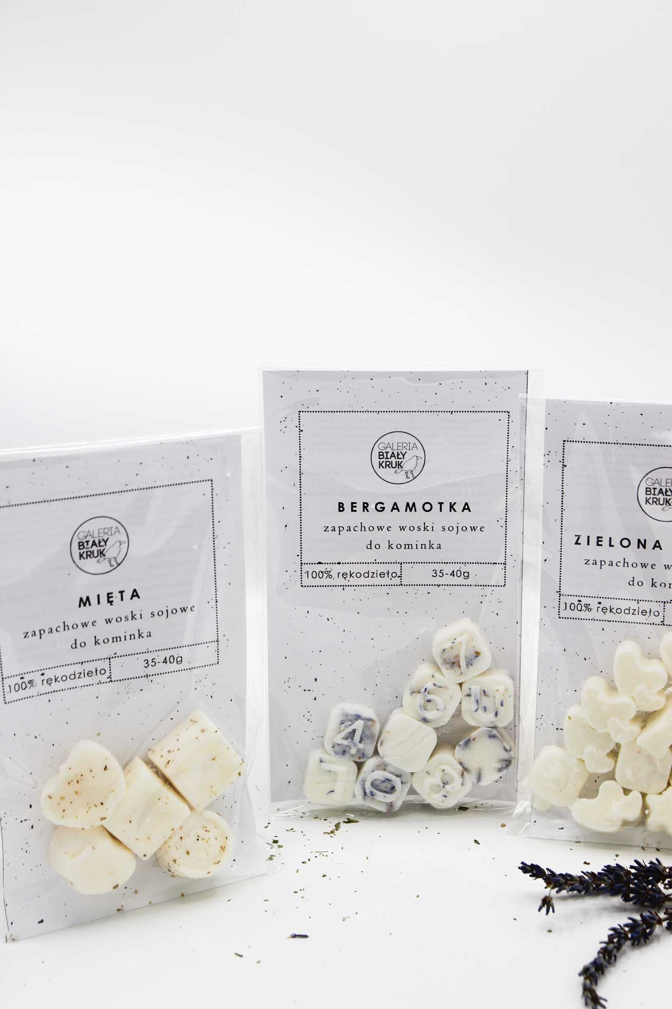 Nasze woski powstają w Galerii Biały Kruk z naturalnego wosku sojowego, w niewielkich partiach, z dbałością o każdy detal. Wytwarzane są przez osoby z niepełnosprawnościami, które wkładają w nie serce i troskę o najwyższą jakość.
